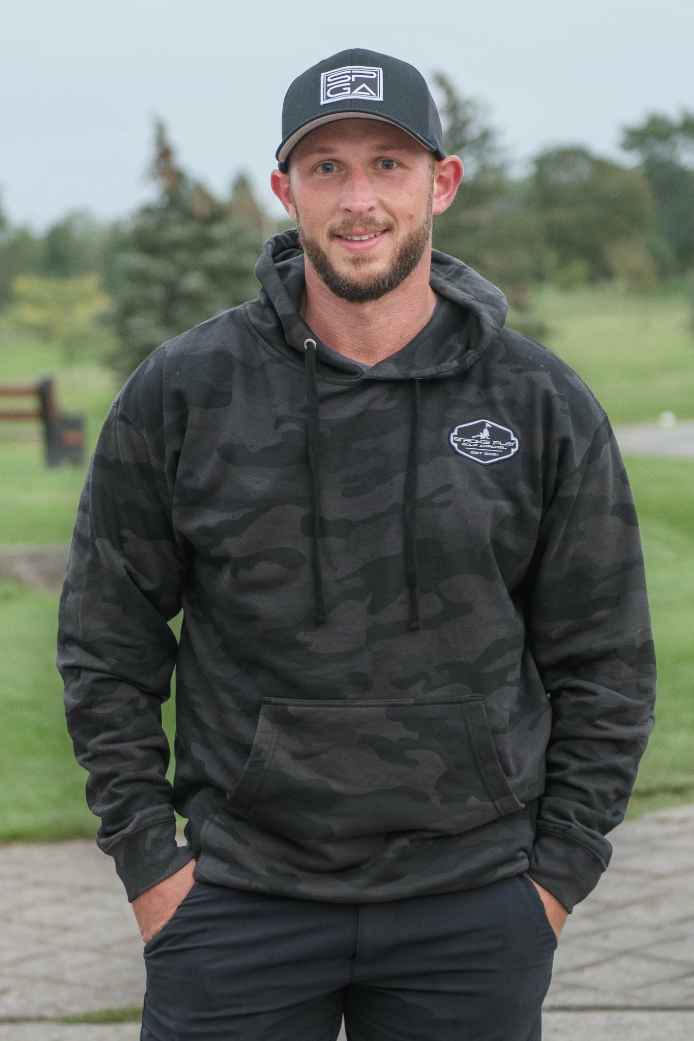 Make it easy to hide from greenskeepers while night putting in this black camo hoodie.